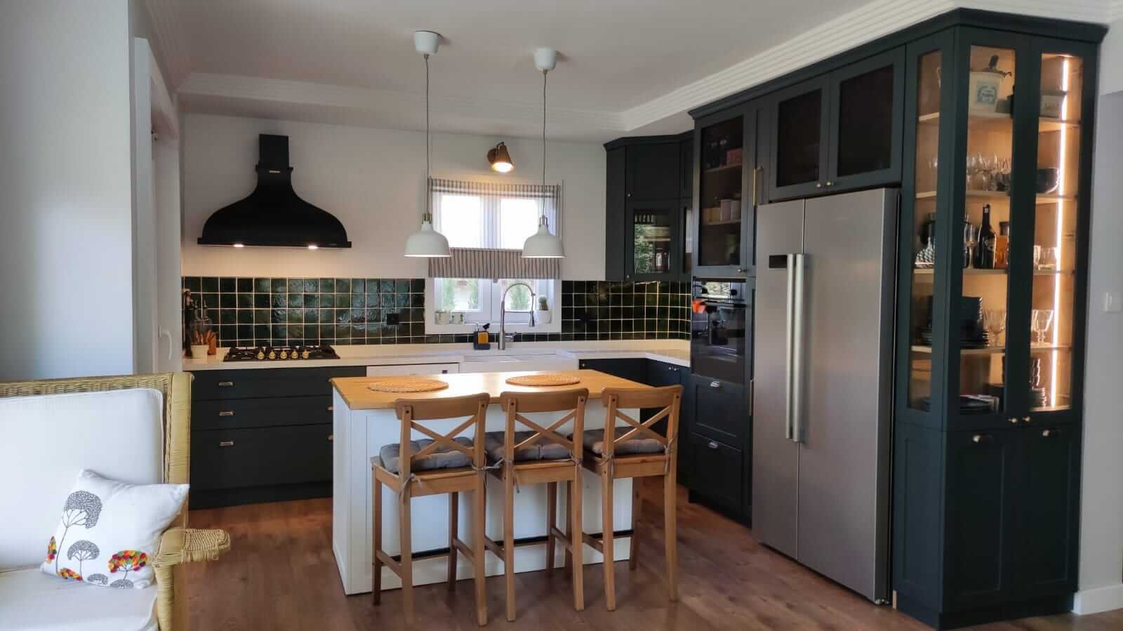 Ankara gölbaşı bölgesinde yapılan farklı renk kantri mutfak.Tezgah arasında müşterimizin tercih ettiği el yapımı seramik kullanılmıştır.